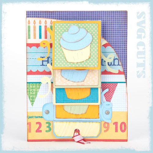 Wow them with an amazing three-dimensional waterfall card!  They look complicated and complex, but they're surprisingly easy to make!  Perfect for birthdays, thank yous, Easter, Spring, kids and baby showers.  The Baby card is sure to be the talk of your next baby shower and part of Baby's keepsakes.  The Bloom card features three-dimensional flowers and can look elegant or cheerful, depending on the color scheme and patterns you use.  Clearly the Cupcake Card is fabulous for a birthday or celebration, and the Dino Card will definitely delight the little ones!  Of course the egg-shaped Easter Card is adorable for any Spring occasion.